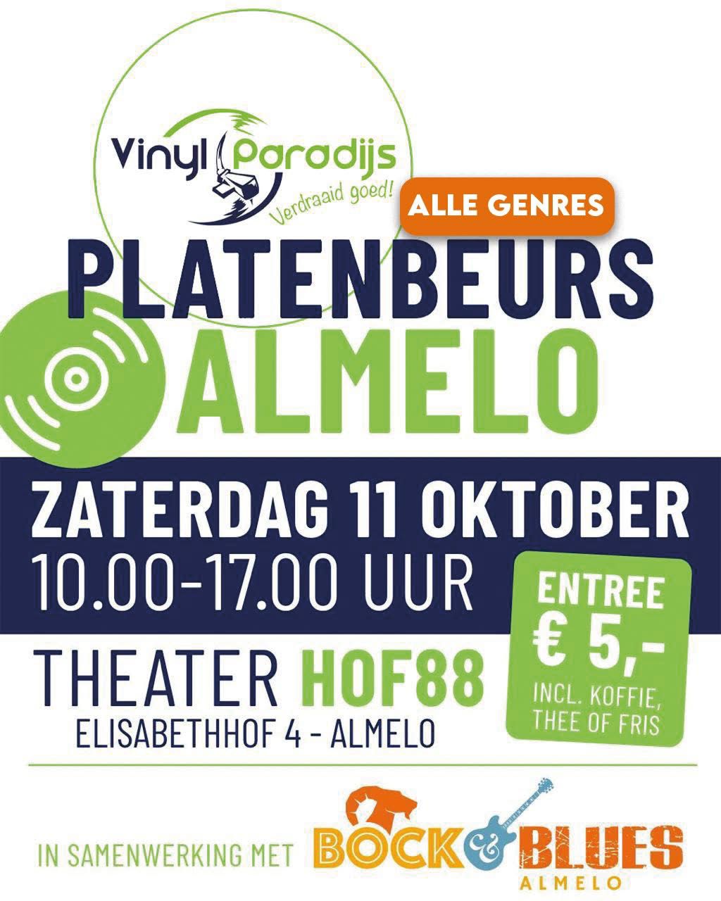 Dé platenbeurs van Oost Nederland. Ruim 140 meter aan vinyl. Wij maken van Hof 88 een grote platenwinkel. Dit alles in een super gezellige lokatie. Kom zaterdag 11 oktober naar Almelo voor de enige echte Almelose Platenbeurs